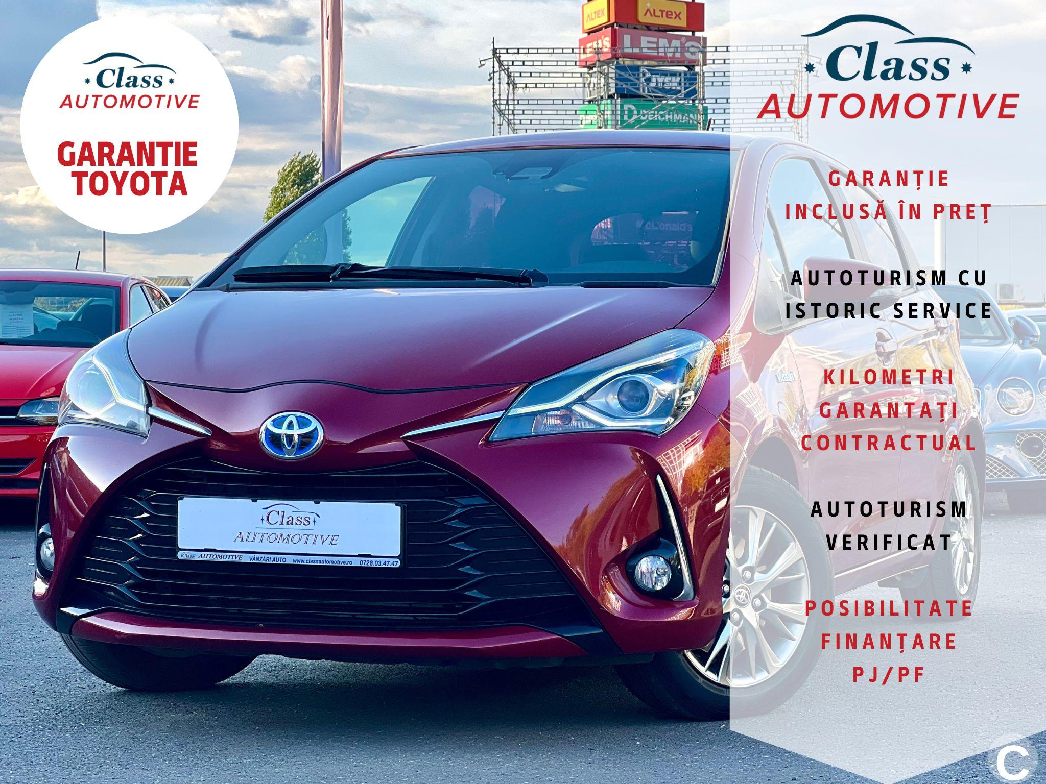 CLASS AUTOMOTIVE – Dealer Auto Rulate --Experienta 15 ani-- TOYOTA YARIS Hybrid - 2020 - Automata - Primul Proprietar Garantie TOYOTA Serie sasiu: VNKKD3D350A646784 Pret: 14.490 EURO TVA inclus si deductibil Pret finantare: 15.045 EURO TVA inclus si deductibil Factura se va emite in lei la cursul de vanzare euro al Bancii Transilvania din data efectuarii platii. ✅GARANTIE 10 ani Toyota ✅Istoric service Toyota ✅Un singur proprietar ✅Autoturism verificat tehnic ✅KM garantati contractual Dotari: - Cutie automata - Climatizare bi-zona - Sistem multimedia cu Radio, Bluetooth - Pilot automat cat si regulator viteza / Cruise control - Geamuri electrice fata - Lane Assist - Computer de bord - Oglinzi reglabile electric incalzite - Sistem Anticoliziune - ABS (controlul franarii) / ESP (controlul stabilitatii) /ASR (controlul tractiunii) - Airbag -uri frontale , laterale / genunchi - Inchidere centralizata Descrierea autovehicului este strict informativa, pot exista greșeli de dactilografiere (optiuni, performanța a motorului, capacitate cilindrica, transmisie etc.) In caz de nelămuriri cu privire la opțiunile prezentate, ne puteți contacta telefonic pentru detalii suplimentare.