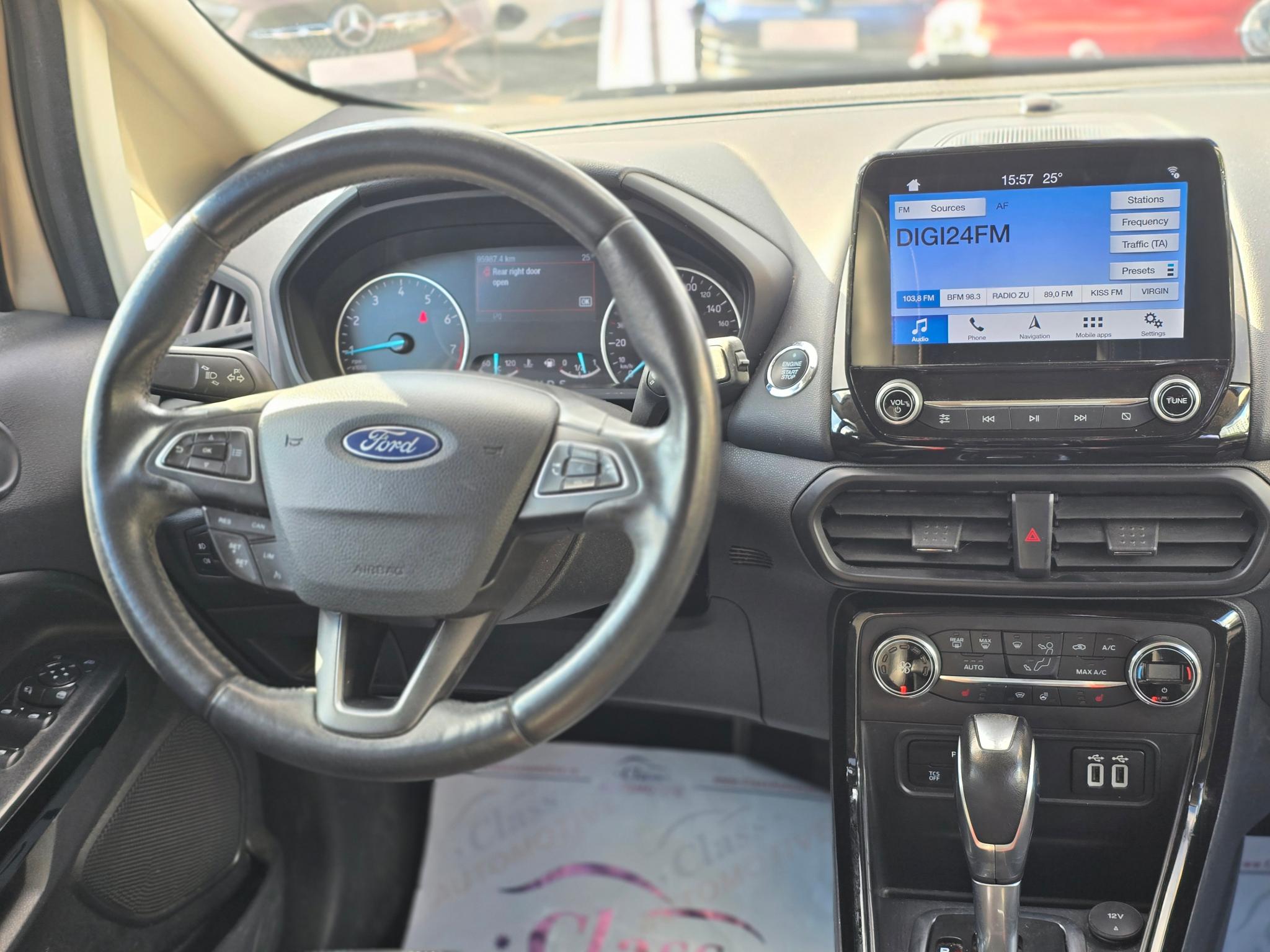 CLASS AUTOMOTIVE – Dealer Auto Rulate Pentru vizualizarea stocului complet accesati www.classautomotive.ro --Experienta 15 ani-- Ford Ecosport 1.0 Ecoboost Titanium 125 CP - Automata ✅Istoric Service Ford ✅Garantie 12 Luni ✅Cumparata de noua din Romania ✅Autoturism verificat tehnic ✅KM garantati contractual Pret: 11.750 EUR TVA inclus si nedeductibil Pret finantare: 12.550 EUR TVA inclus si nedeductibil Factura se va emite in lei la cursul de vanzare euro al Bancii Transilvania din data efectuarii platii. SERIE SASIU: WF01XXERK1KT70653 Dotari: - Senzori fata/spate - Climatronic - Camera video marsarier - Computer bord - Pilot automat - Scaune fata incalzite - Volan Incalzit - Asistent plecare din rampa - Jante de aliaj - Volan multifunctional imbracat in piele - Android auto si Apple Carplay - Bluetooth, USB - Lumini de zi - Senzor ploaie - Proiectoare ceata - Geamuri electrice fata-spate - Isofix Descrierea autovehicului este strict informativă, pot există greșeli umane de tipar (opțiuni, performanța a motorului, capacitate cilindrică, transmisie etc.) Pentru informatii suplimentare cu privire la opțiunile prezentate, ne puteți contacta telefonic.